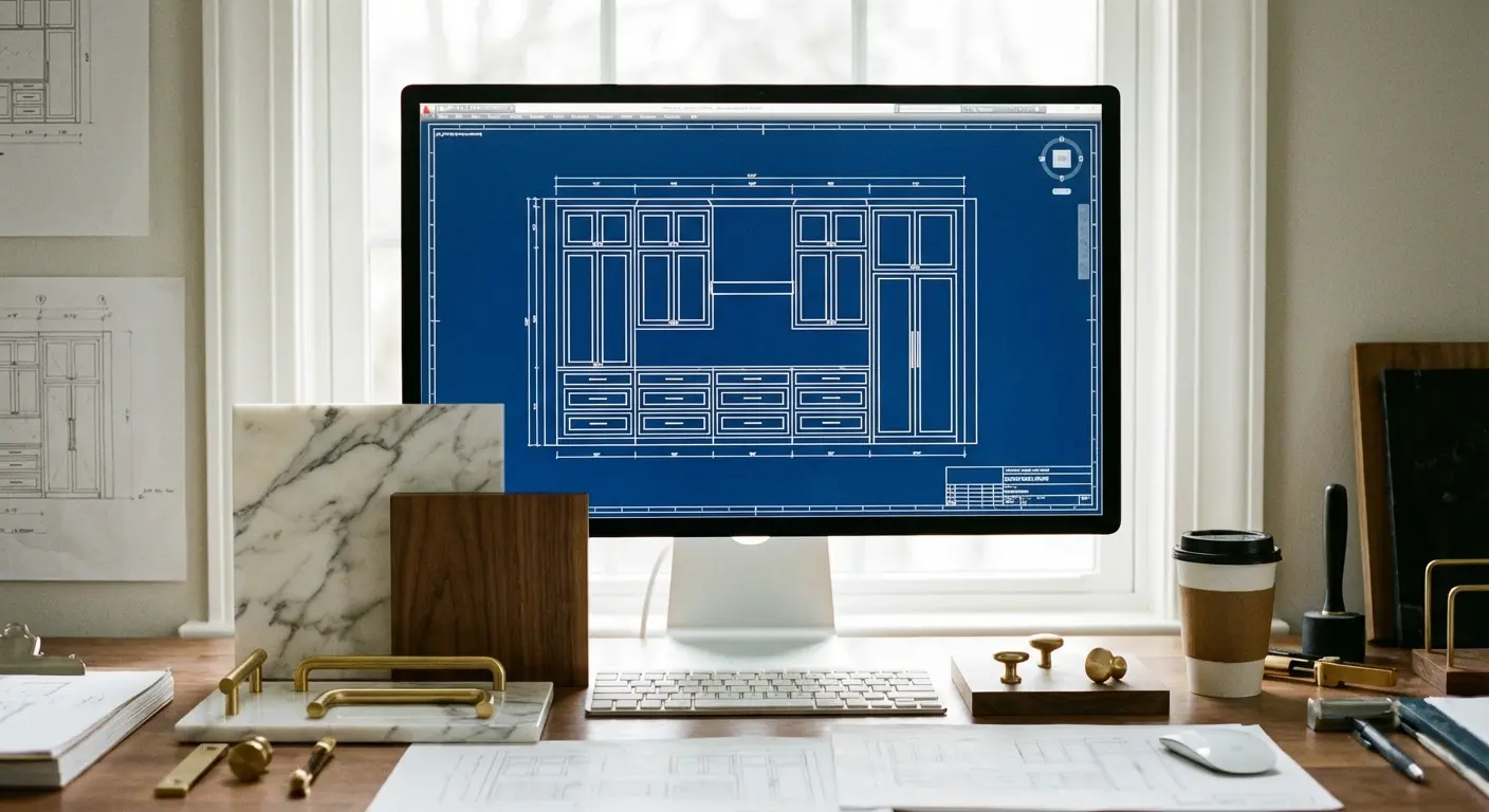 We don't guess. We build your kitchen virtually first. You will receive detailed CAD elevations and 3D renderings to approve every drawer bank and appliance clearance.